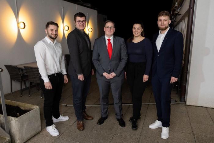 Parteileitung der JSVP Baselland: Lionel Müller (1.v.r.) und Sarah Regez (2.v.r.)